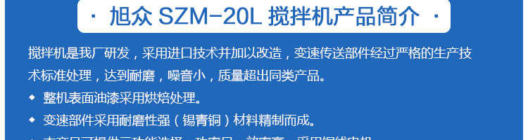 名稱SZM-20型四功能攪拌機 電源220V 功率1.1kw 產量 尺寸外形尺寸550*420*780mm 重量98kg 規格 其他